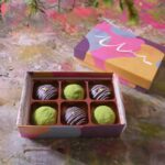 スポンジに最高級タヒチ産バニラのムース、マンゴームースを重ね、旬のマンゴーを花びらに見立てデコレーションし、ケーキの周りに花柄プリントのチョコレートをあしらったケーキです。甘い香りに誘われてやってきた蝶のチョコレートがアクセントになっています。