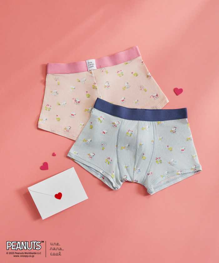スヌーピーと仲間たちと一緒に、素敵なバレンタインを過ごしてみてはいかがでしょうか。メンズボクサーパンツやルームウエアも展開しているので、おそろいでそろえるとかわいいですね。