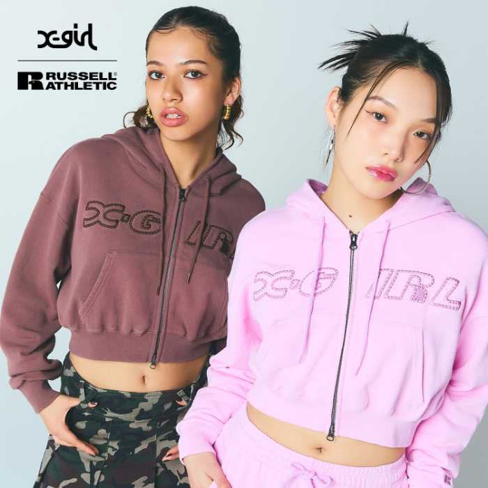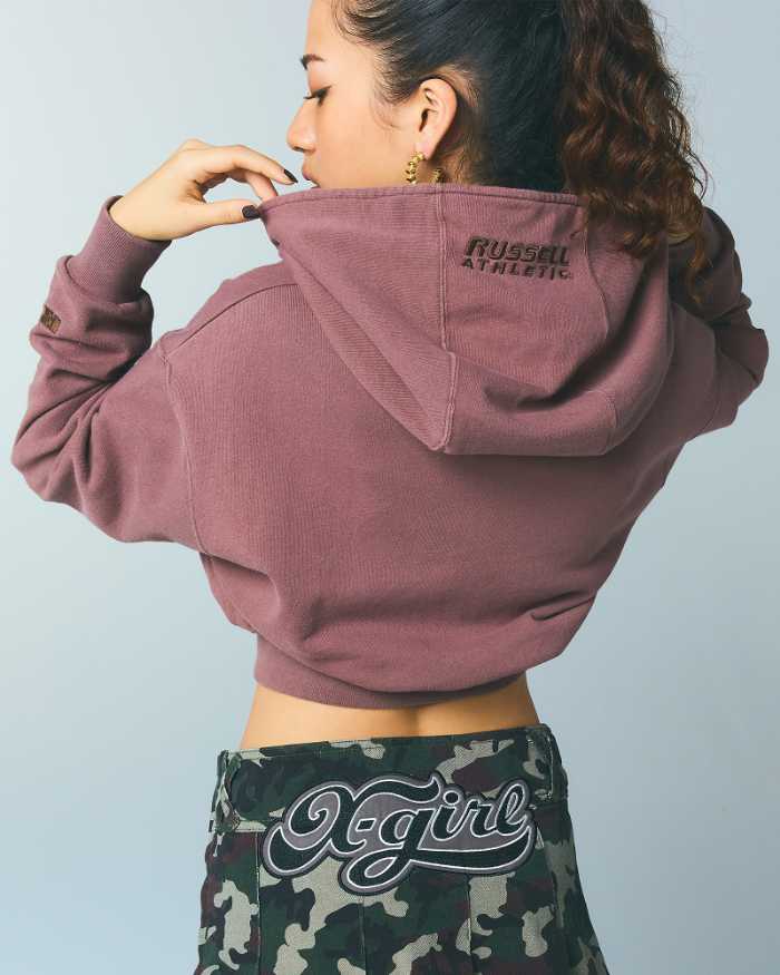 X-girl × RUSSELL ATHLETIC CROPPED ZIP UP HOODIE