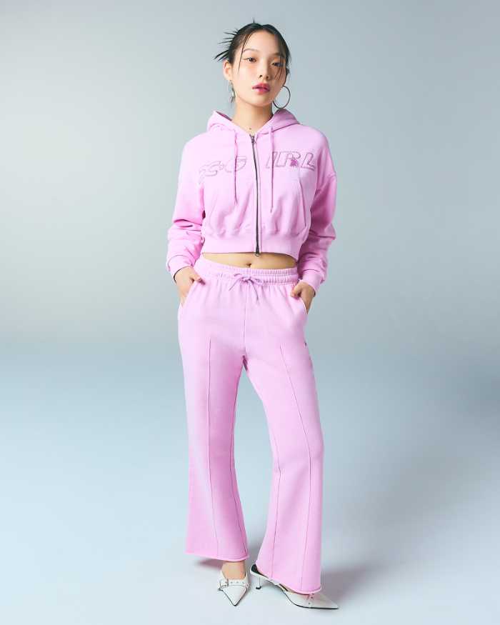 ジップアップフーディーはボトムとのバランスが取りやすいクロップド丈で展開されるジップアップフーディーとフレアパンツは、セットアップとしてはもちろん、単体でも楽しめるアイテムです。