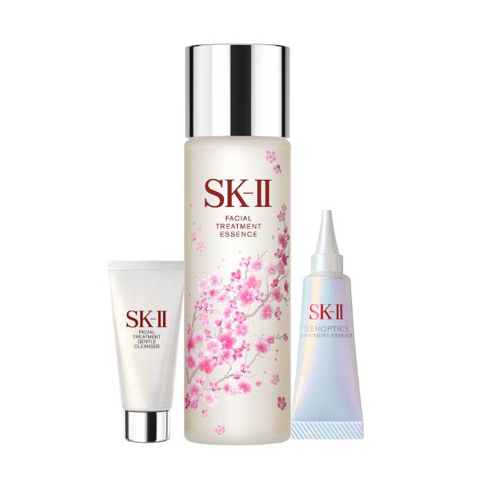 【内容】SK-II フェイシャル トリートメント エッセンス 桜 リミテッド エディション(化粧水)230ml、フェイシャル トリートメント ジェントル クレンザー (洗顔)20g、ジェノプティクス インフィニットオーラ エッセンス(美白美容液)〈医薬部外品〉10ml