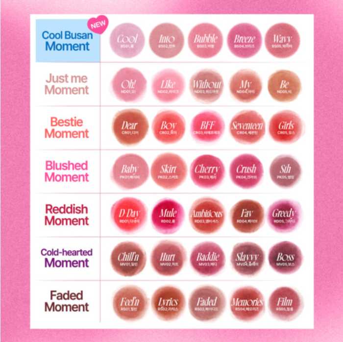 既存の6つのモーメント、全30色に「Cool Busan Moment」が新たにプラスされ、7つのモーメント、全35色のさらに豊富なカラーラインアップ。