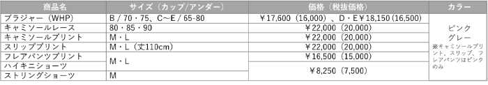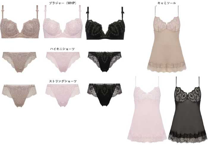 ブラジャーにくわえて、キャミソールとショーツ2型で展開しています。