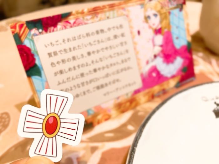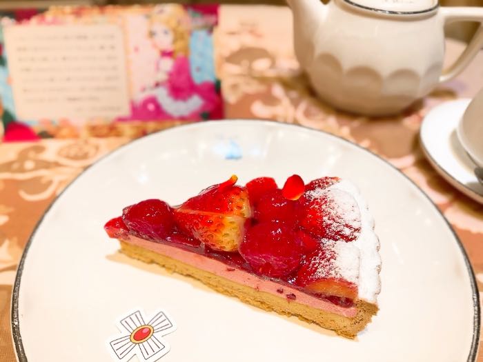 実はこちらのタルト、イートインで注文すると、数量限定で、オスカルの軍服に輝く勲章モチーフのピックと、マリー・アントワネットからの手紙がプレゼントされる素敵な特典も…!!あの繊細なタッチで描かれたイラストと、アントワネットからのメッセージ、「ベルばら」ファンには堪らない世界観に浸りながらいただけます♡