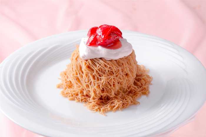 そのほかに、その場で完成させてくれるフワフワのパンケーキや、真っ赤ないちごが敷き詰められたいちごピッツァ、昨年度人気ナンバーワンだったモンブランも必見。