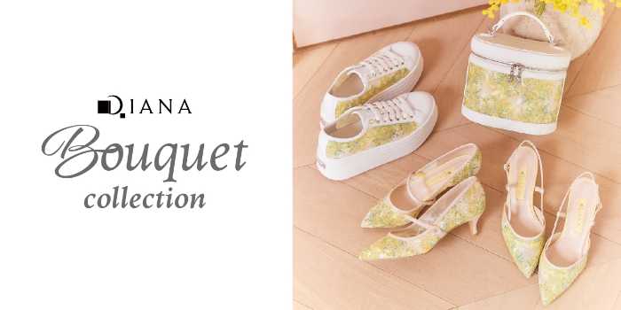 レディースシューズ・バッグブランド「ダイアナ」より新作のご案内です。発売して以来、大好評の「Bouquet collection Vol.2」に続き第三弾が登場いたします。第三弾では3月8日の「国際女性デー」に合わせてミモザブーケをモチーフにしたシューズ3モデル、バッグ1モデルをラインアップ。少しでも気になる方は、ぜひこの機会にチェックしてみてください。