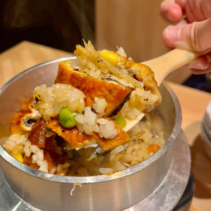 蟹といくらも迷ったけど、鰻の釜飯を選択!