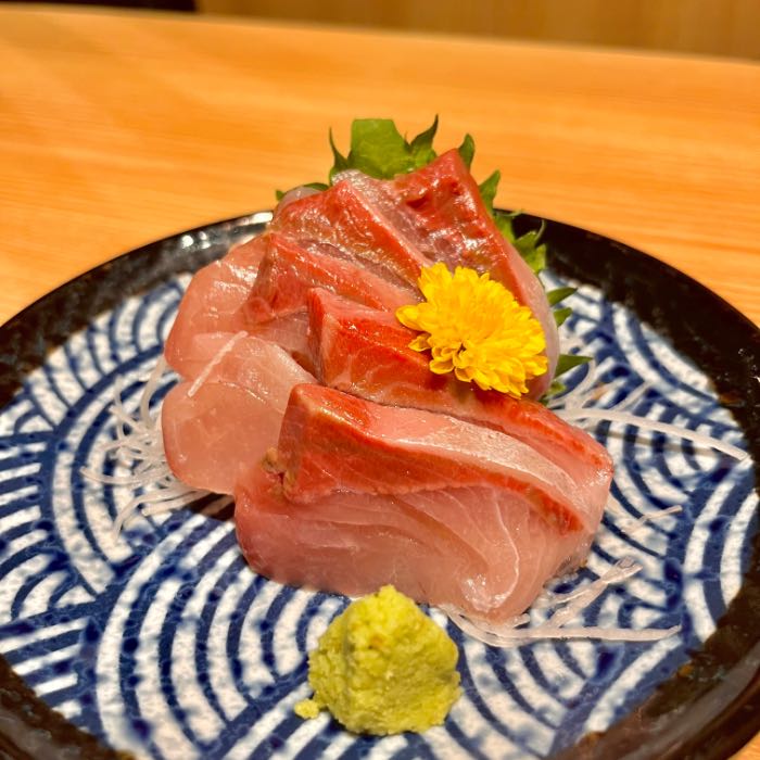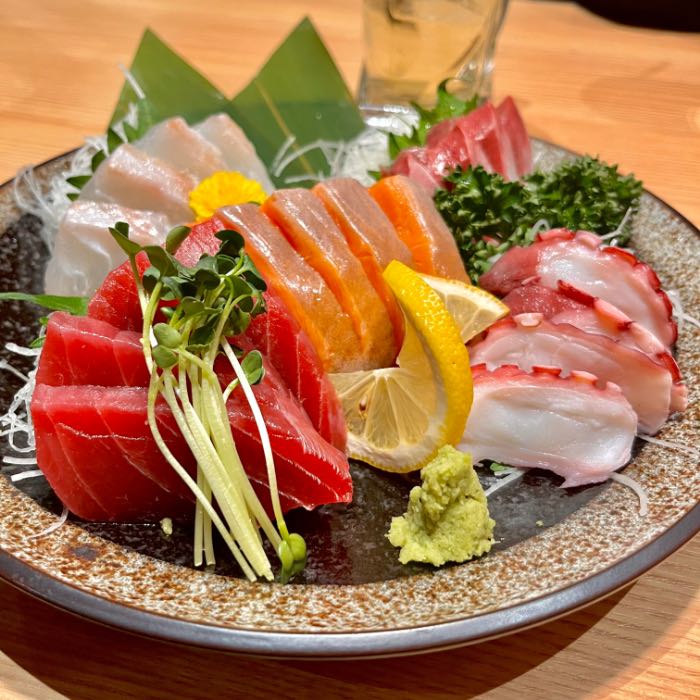 マグロ、トロサーモン、タコ、活鯛、ブリの5点盛り!