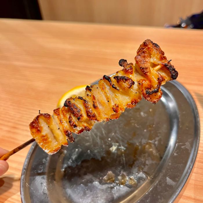 塩味と脂の甘みからなる甘塩っぱい味わいが癖になる一串。