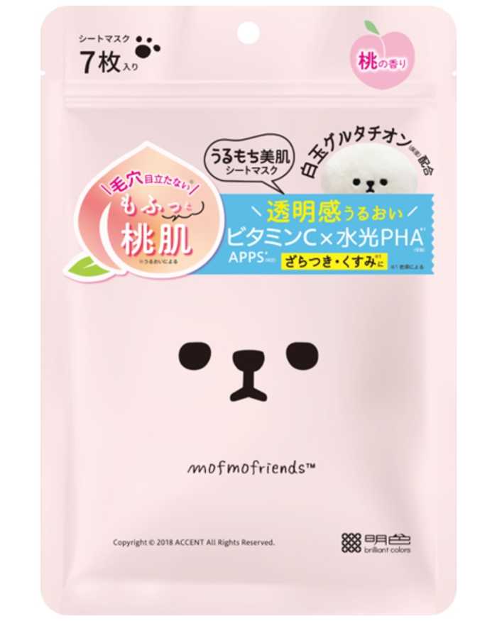 ほんのりと桃が香るうるもち感触のシートマスクが、肌にピッタリと密着。つるすべ肌へと導いてくれるシートマスクです。