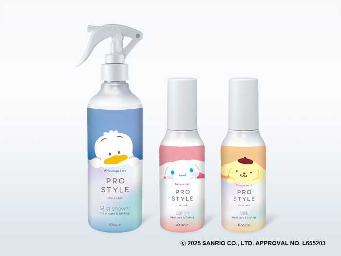 クラシエでは、ヘアスタイリング剤専門ブランド「プロスタイル」より、サンリオの人気キャラクター「あひるのペックル」「シナモロール」「ポムポムプリン」をデザインした、数量限定のスタイリング剤を、2025年5月16日(金)より数量限定で発売いたします。サンリオとのコラボアイテムが、人気の「ヒートケア&スタイリング」シリーズから発売されます。ぜひこの機会にチェックしてみてください。