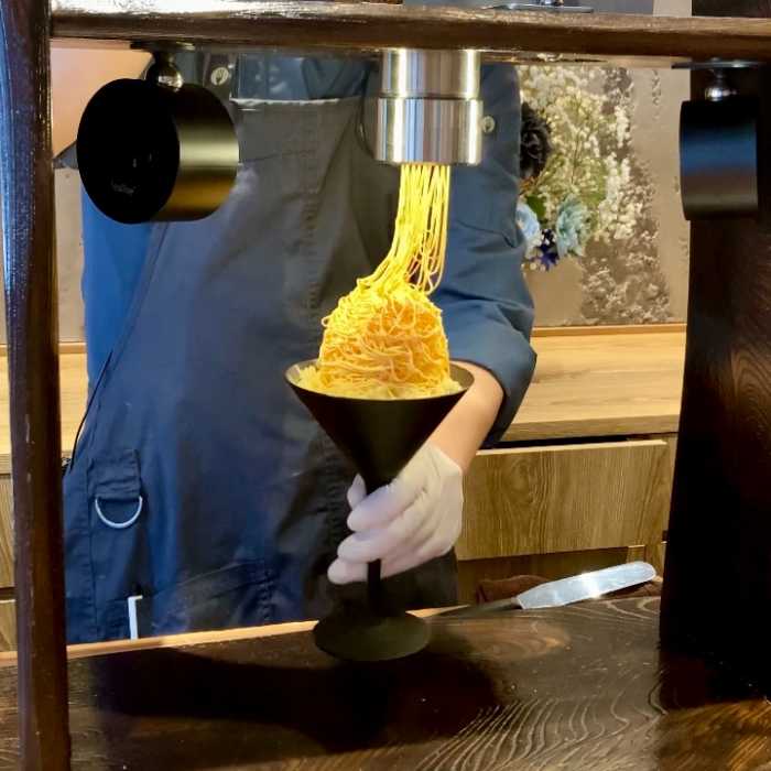 目の前で絞り出されるガナッシュモンテは思わず動画や写真を撮りたくなる美しさでです。