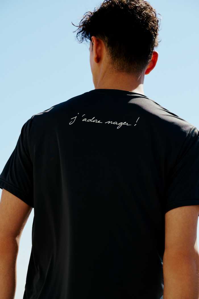 2025年の新作コレクションでは、「アニエスベー」のブランド創設者のアニエス・トゥルブレ氏が自ら撮影したパリの夜景や青空のフォトをプリントした水着や、日常的にスイミングを楽しむアニエス氏の手書きによる“j’adore nager!(泳ぐことが好き!)”のメッセージをあしらったTシャツが展開。