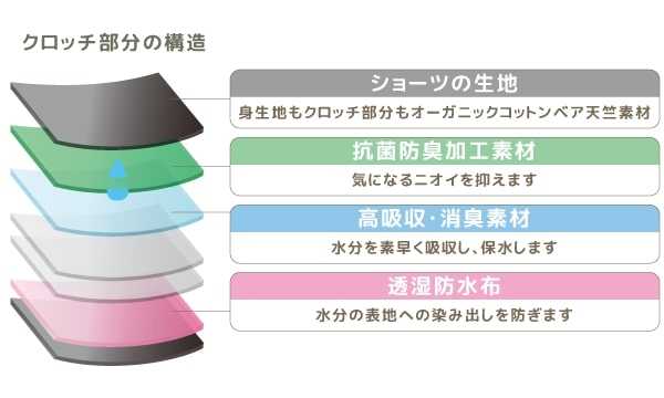 クロッチ部分は、抗菌防臭加工を施した素材を内部に使っているので、においが気になる時も安心して使えそうですね。