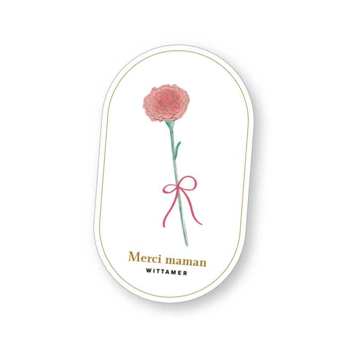 まるでカーネーションの花のように上品で華やかな、フリルがかわいい「ロゼ・ノーブル」と、真っ赤なリボンを飾った「メール・シェリー」の2種類がラインアップ。