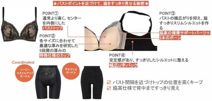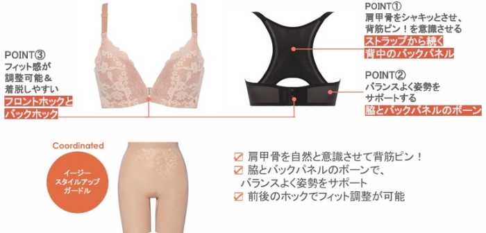 そのほかに、「美姿勢サポートブラ」と「スタイリングコレクション」から新デザインが登場しています。ぜひこの機会に、新シリーズや新デザインを試してみてください。