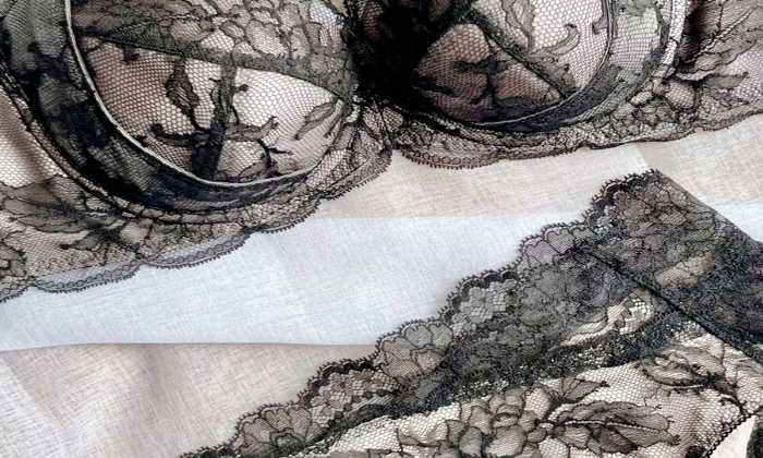 特許技術を使い、装飾レース生地と伸縮性生地を一体化して縫製することで、耐久性の向上を実現。繊細なレースを使ったデザインですが、強度が高いので長く愛用できます。