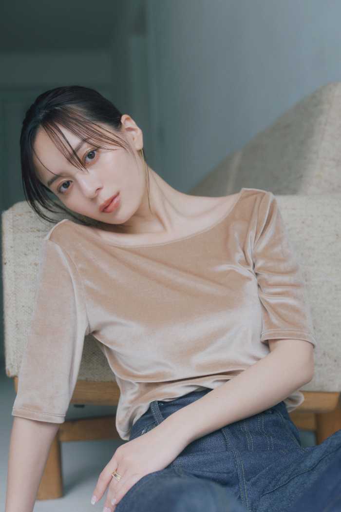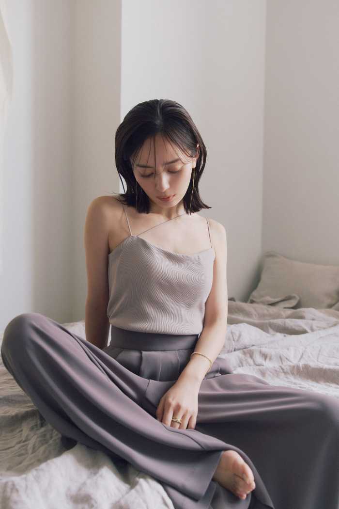 着回し力のあるカップインキャミソールはシンプルでありながら、ベロア素材を使用することにより上品な印象を与えます。