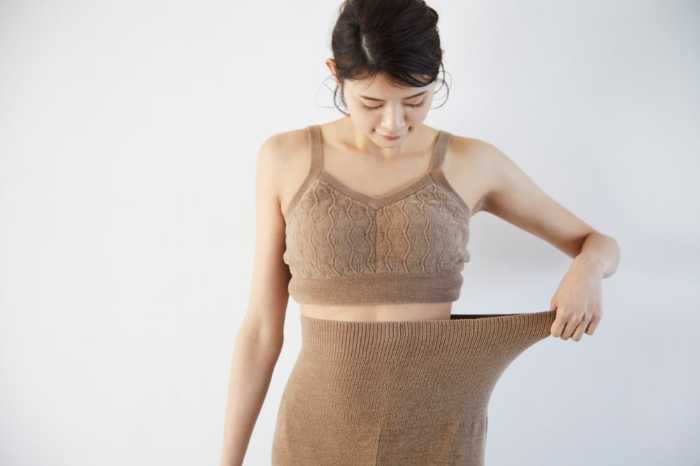 ハーフトップブラや腹巻ロングパンツなど、ニット素材を使ったランジェリーを展開しています。