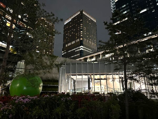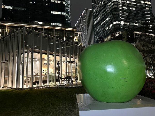 LOHEのテラスでは、安藤氏による青りんごのオブジェと梅田の夜景を眺めながら、静かな余韻にひたることも。五感で味わう、アートなひとときが楽しめます。