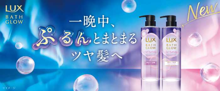 お風呂上がりの髪のまとまりやツヤ感がずっと続く、「ラックス バスグロウ」シリーズから登場しています。