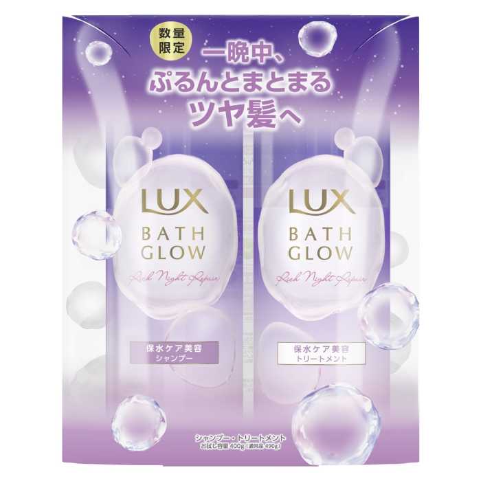 大人気の「ラックス バスグロウ」シリーズから、数量限定の”ナイト浸透ケア”シャンプーが登場します。就寝中にしっかりと髪に浸透し、長くうるおってまとまる髪へと導いてくれます。
