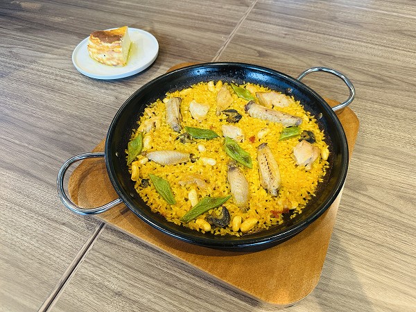 看板メニューは、バレンシア伝統の「バレンシアパエリア」。国産米に鶏肉、ウサギ肉、エスカルゴ、インゲン豆を合わせた本格派。ウサギ肉は鶏肉に似た淡白な味わいで、ヘルシー。肉の旨味が米に染み込み、深い味わいに仕上がっています。