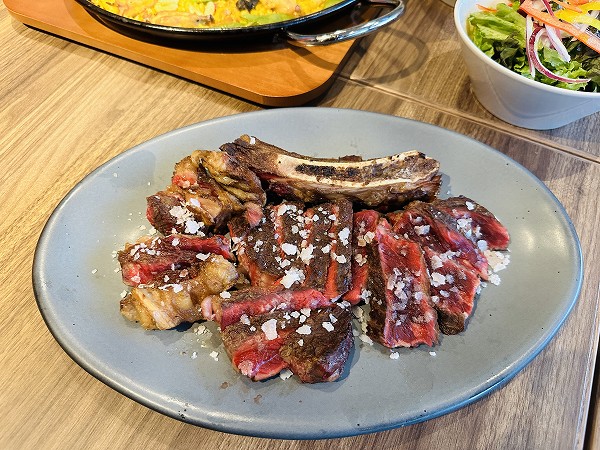 特に注目したいのが、ルクア大阪店限定のスペシャルメニュー。熟成骨付きビーフリブロースステーキ「チュレタ」は必食。スペイン・ガリシア州で育った雌牛「Vaca(バカ)」を使用したチュレタは、最大160日間熟成され、ナッツのような香ばしい香りとジューシーな味わいが特徴です。肉好きにはたまらない一品です。