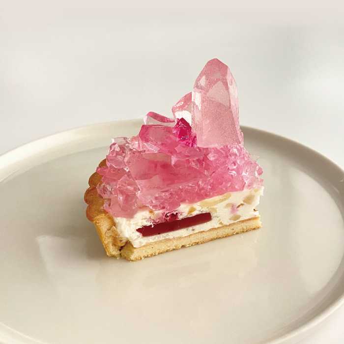 制作予定数の200台を予約し、追加制作が決定したほどのスイーツで、煌めく鉱物を飾ったような、華やかで特別感のあるデザインが魅力的な限定タルトです。