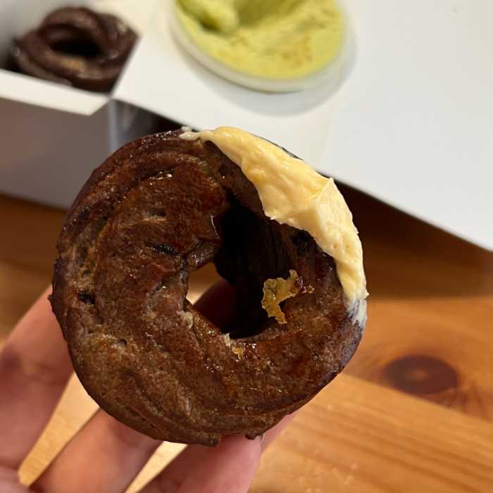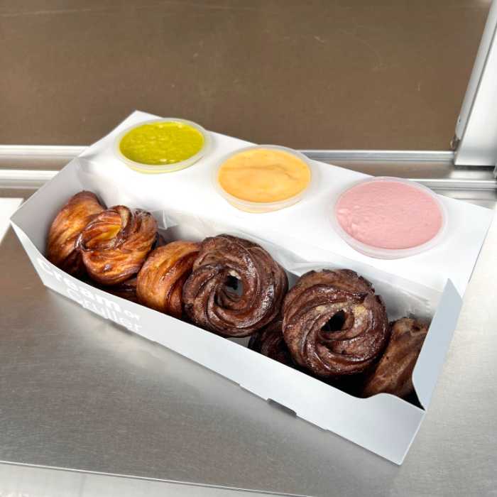 「Cream or Cruller」の最大の特徴でもあるこのディップクリームは、カスタード、フランボワーズ、ピスタチオの3種類をご用意。「I’m donut?」でも人気を誇るクリームドーナツで使用されているものと同じく、自家製にこだわっています♡