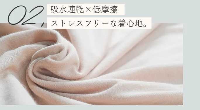 優れや吸水性や速乾性に加えて、摩擦の少ない生地設計で、肌へのストレスを極力抑えています。