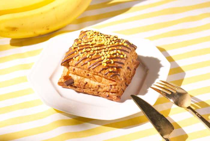 729層に重なったサクサクパイ生地の中にバナナの果肉が入ったバナナカスタードクリームをたっぷりと注入。