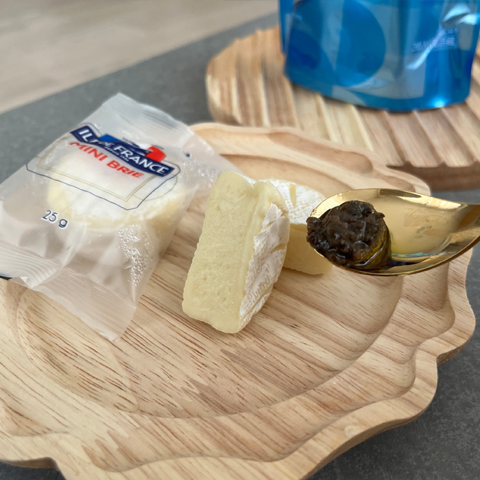 トリュフとチーズの組み合わせは合わないわけないですよね。トリュフペーストはトリュフの風味が強く香りもガツンと来ますが、食べてみるとミニブリーのまろやかさもあってマッチしていました。