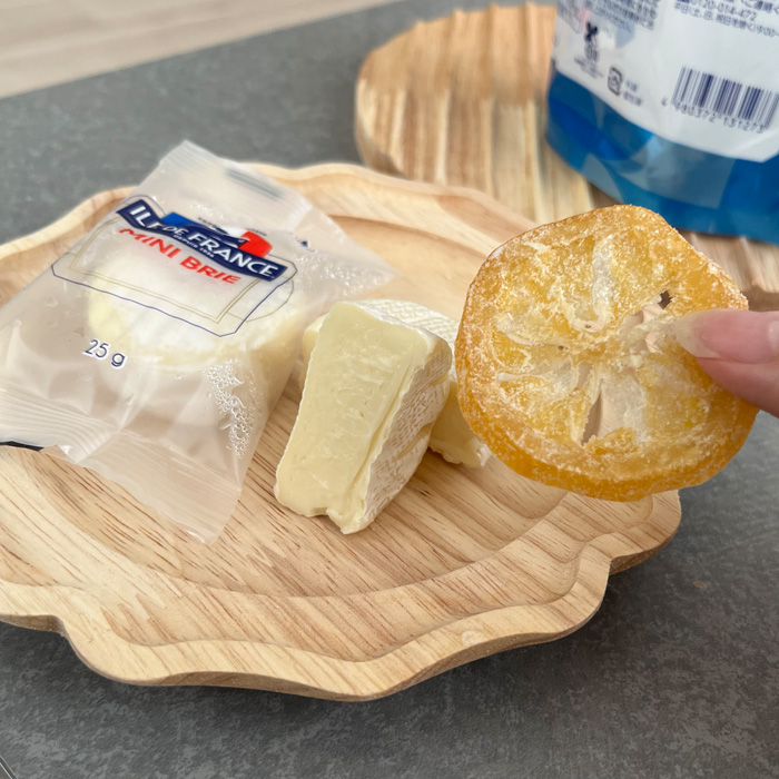 個人的にレモンピールとの組み合わせが一番好みでした♪レモンピールの甘酸っぱい酸味とミニブリーのクリーミーな味わい合わさることで、レアチーズケーキを食べている感覚になりました!