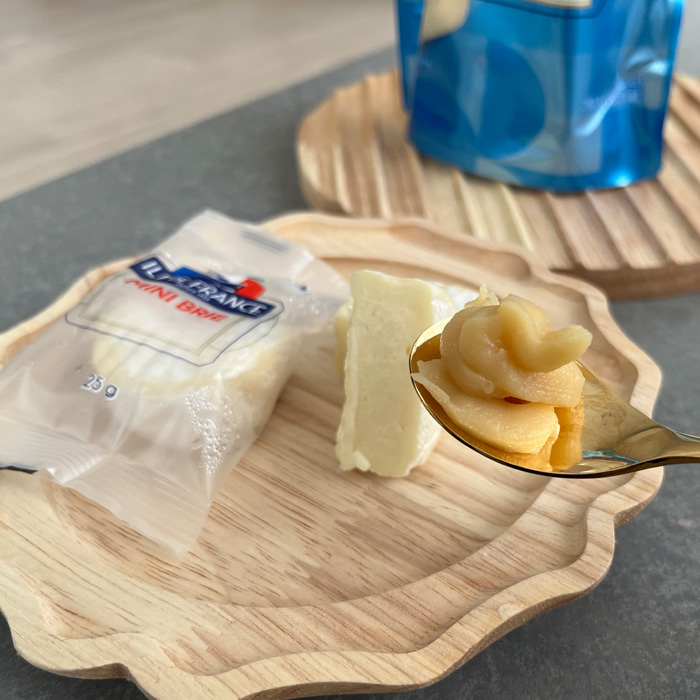 ミニブリーのクリーミーな味わいで塩気があるので、白味噌の甘みが合わさり、まろやかな風味に!和と洋の掛け合わせで楽しめるチーズの味わいでした。