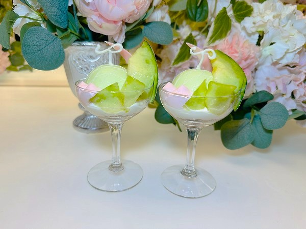 赤肉・青肉メロンとヨーグルトゼリーが重なった、見た目もひんやり爽やかなデザート。夏にぴったりのフルーティーな味わいです。