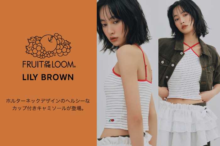 レディースブランド「LILY BROWN(リリー ブラウン)」は、5月21日(水)よりベーシックアパレル/アンダーウエアメーカー『FRUIT OF THE LOOM(フルーツ・オブ・ザ・ルーム)』とのコラボアイテムを全国の店舗、オフィシャルオンラインストア、マッシュグループ公式アプリおよびウサギオンラインにて発売を開始しました♪