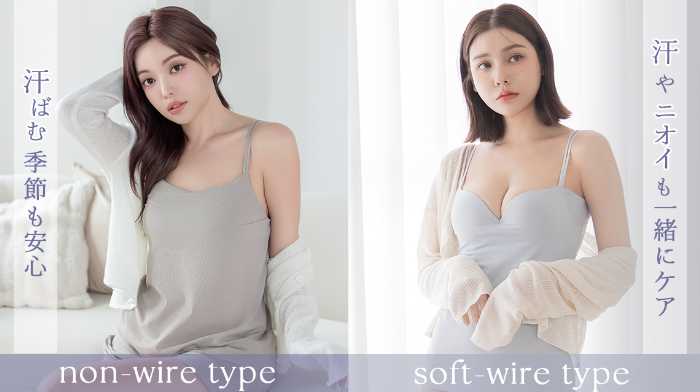 今回は暑い季節にぴったりな「ひんやり接触冷感キャミソール」を、2つのタイプでラインアップ。