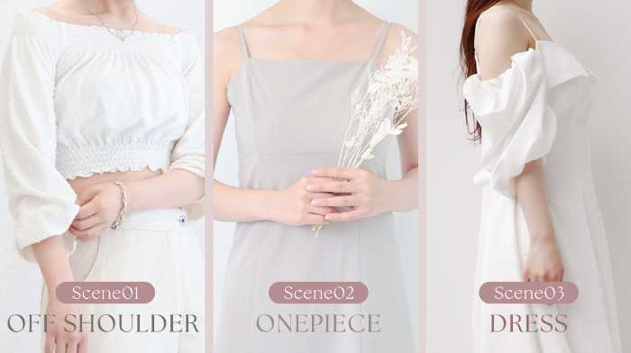 肩ひもがなくても着用できるので、オフショルやワンピースなどの肌を見せるコーデも、スッキリきれいにキマります。