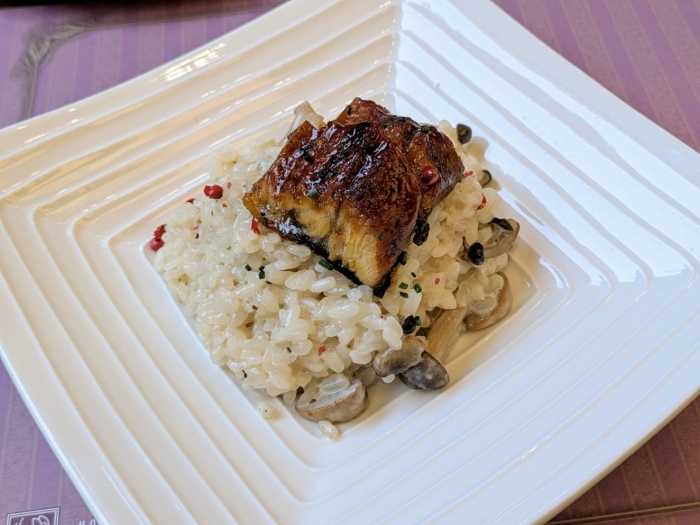 ディナー限定の「鰻のバルサミコソース トリュフ入りリゾット」は、トリュフ入りのリゾットにバルサミコソースをかけて、仕上げに洋風に味付けした鰻を添えていただきます。