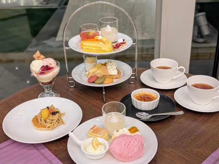 トロピカルスイーツをメインとしたスイーツビュッフェも楽しめます。トロピカルスイーツを盛り付けて作る“自分だけのアフタヌーンティー” で、リゾート気分が高まります。パンケーキに和栗クリームをお好きなだけ絞れる体験も楽しいです。