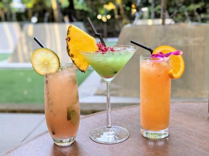 (写真左より)「Guava Mojito-グァバモヒート-」、「Coconut Pineapple-ココナツパイン-」、「Passion Orange-パッションオレンジ-」(ノンアルコールカクテル)