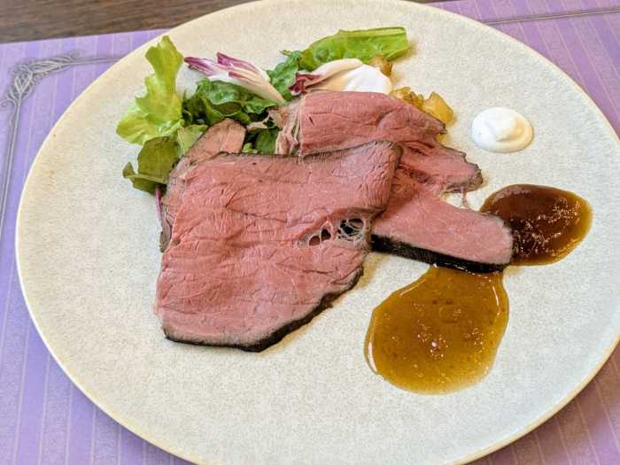 ディナー限定の「ローストビーフ3種のソースをお好みで」は、3種類のソース(山葵クリームソース・グレービーソース・和風ソース)をつけていただきます。3種類のソースで食べ比べをしてみるのもおすすめです。