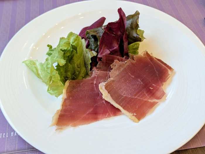 ディナー限定の「生ハムの切り出し」 は、目の前で切り出して提供してくれるスタイル。塩気と旨みをぜひ味わってくださいね。