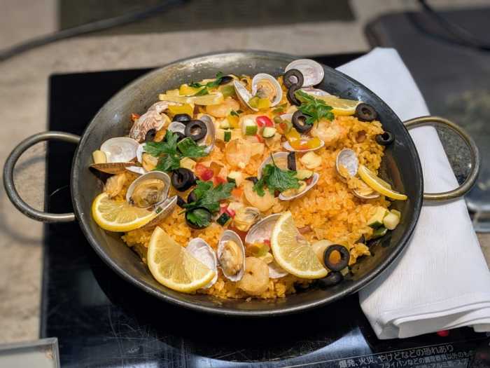魚介のスープにサフランの風味が加わり旨味がつまった「地中海風パエリア」。