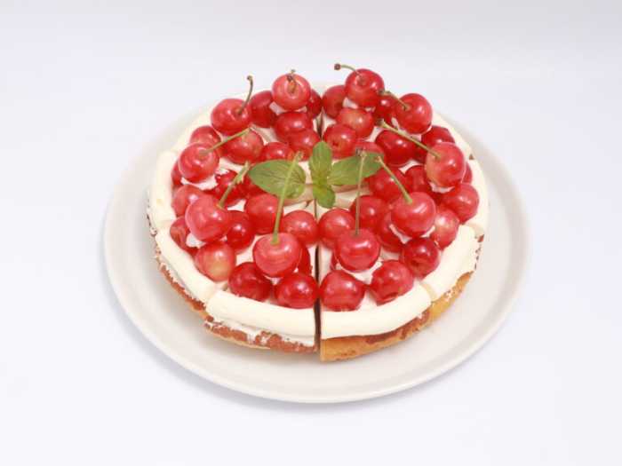 香ばしいアーモンドダマンドに、甘酸っぱいさくらんぼとホイップクリームを飾ったタルトが登場。
