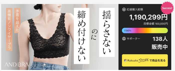 クラウドファンディングサービス「Makuake」にて、達成率1,000%をこえた話題の高機能ブラジャー「AndBra」をご紹介しました。