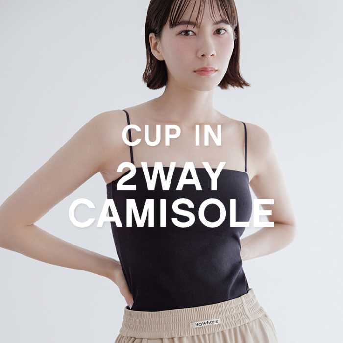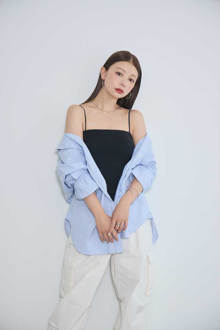 カップ付きキャミソールは、肩ひもを外して着用すればベアトップとしてもコーディネートを楽しめる優秀アイテムです。