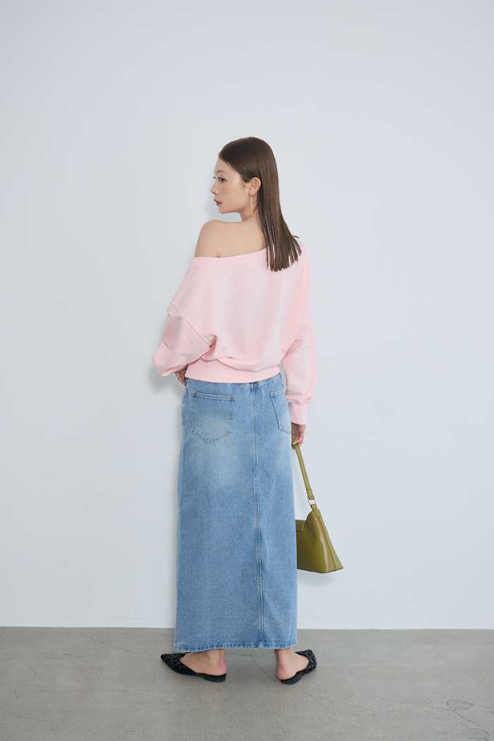 フロントは真っすぐなカッティングで抜け感のあるコーディネートに。