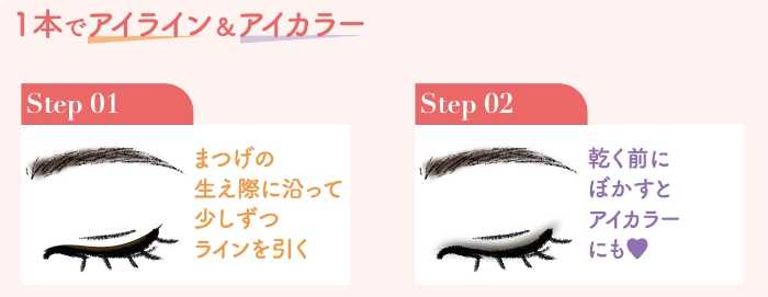 高密着で発色がよく、水・汗・涙・こすれに強い、特に夏におすすめのジェルアイライナー。アイライナーとしてだけでなく、ぼかすことでアイカラーとして活躍してくれる2in1のアイテムです。